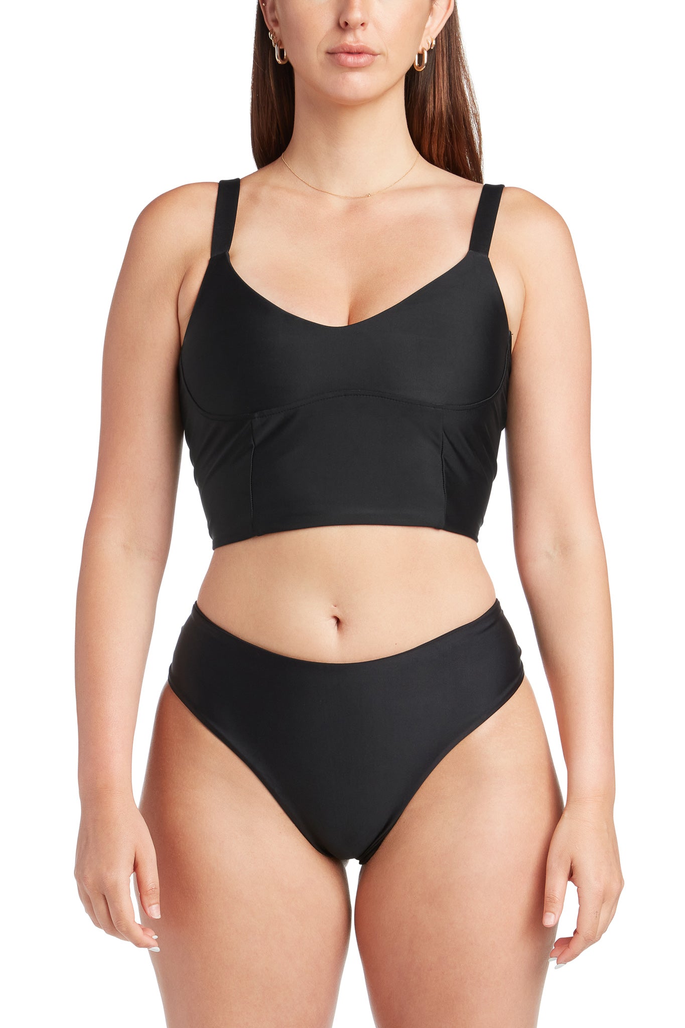 • Enjoy a sleek under bust corset design that delivers structure without the discomfort of wires.