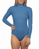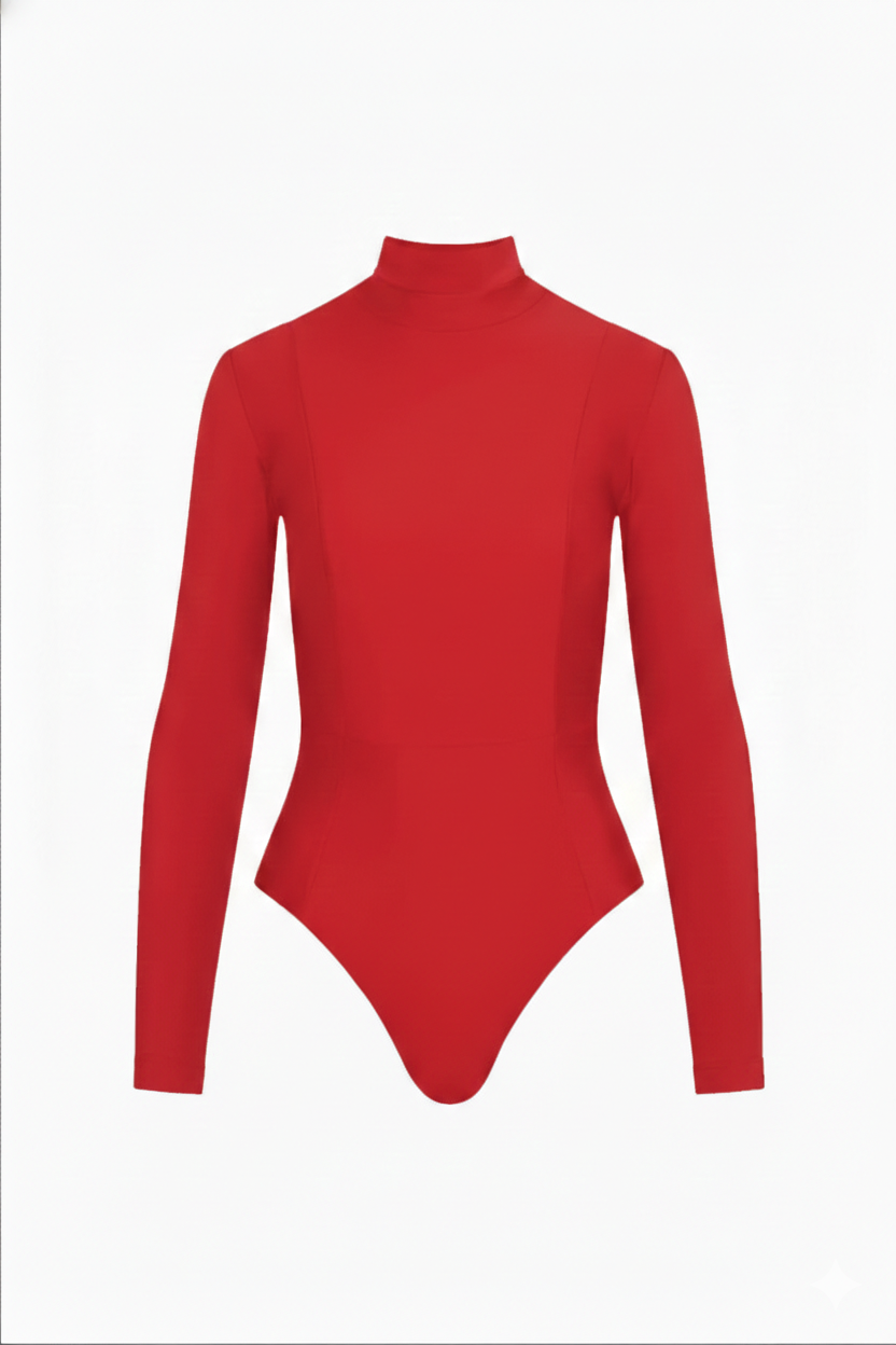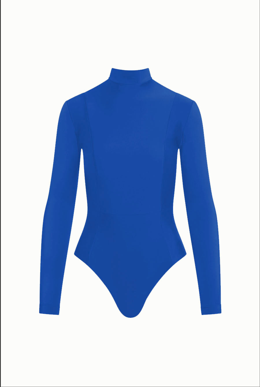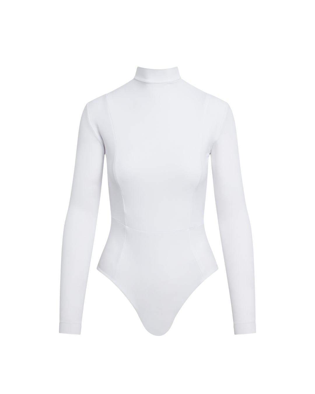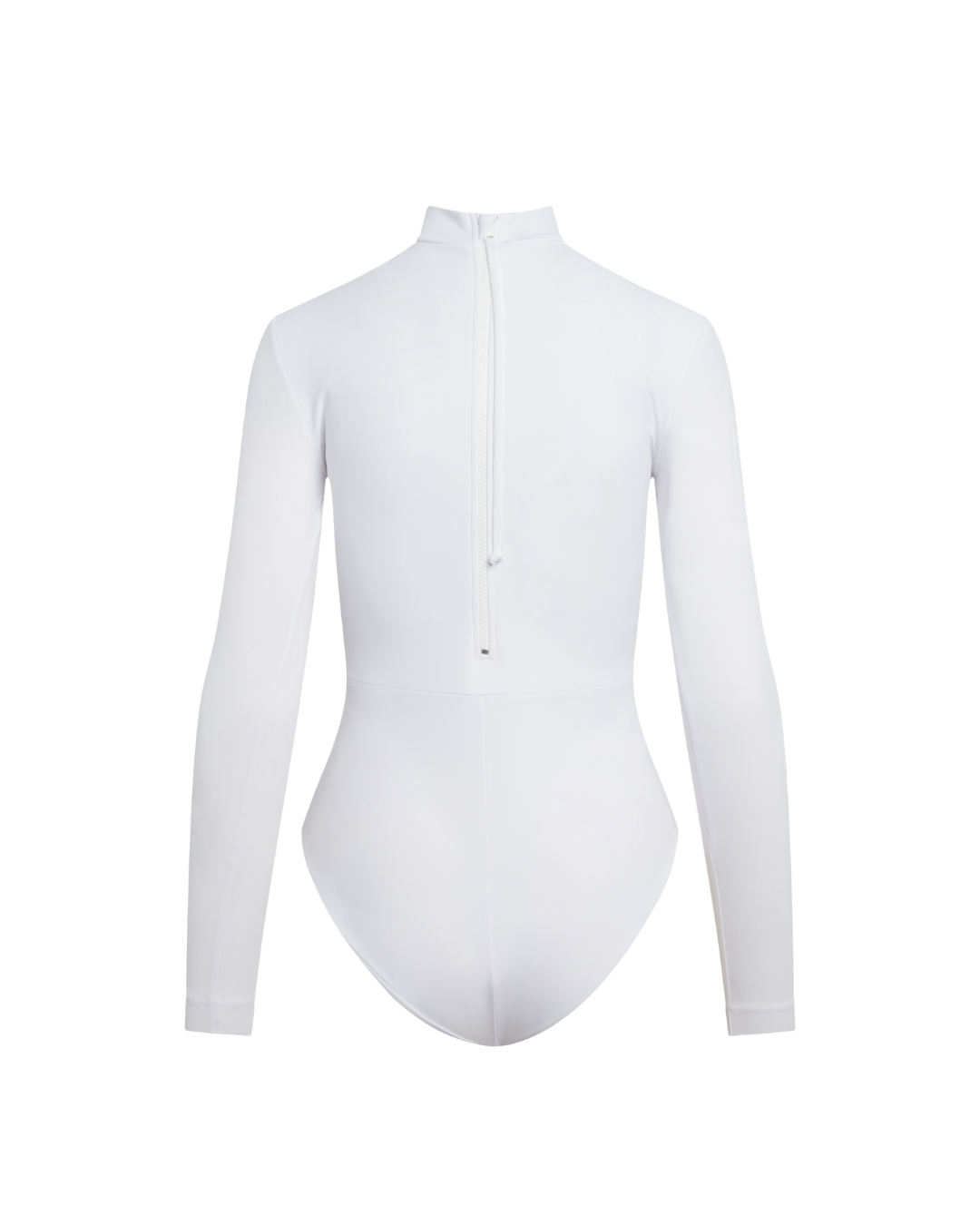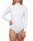 - High neckline with full back and long sleeve coverage
