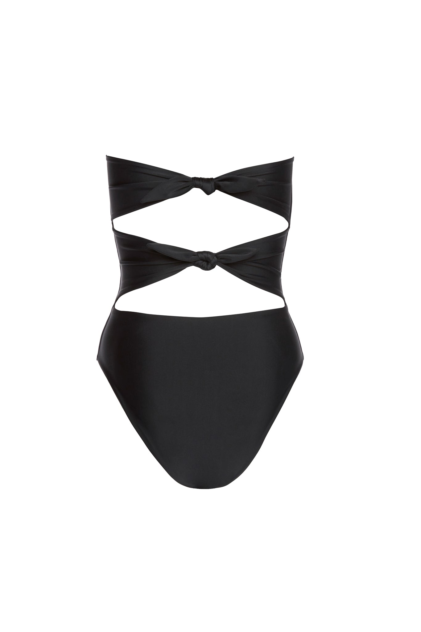 • Adjustable knots in the back at the bust and waist for a tailored, secure fit.